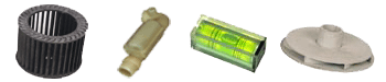 Steam irons, pump housing, vacuum cleaner sub-assemblies, dishwasher spray arms, refrigerator components.